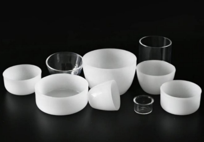 V těchto aplikačních scénářích se křemenné kelímky používají hlavně k držení roztavených sklářských surovin, keramických kalů a dalších materiálů. Jejich čistota může zajistit, že při relativně nízkých teplotách a krátkých dobách ohřevu nedojde k významným nepříznivým vlivům na kvalitu produktu v důsledku přítomnosti nečistot.
