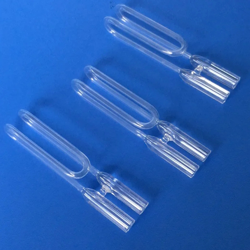 Křemenná U-trubice je vyrobena z vysoce čistého průhledného křemenného skla jako základního materiálu. Je posílena speciálním procesem tepelného zpracování a vydrží testování v širokém teplotním rozsahu. Má minimální deformaci při vysokých teplotách, což zajišťuje stabilitu experimentálních dat.